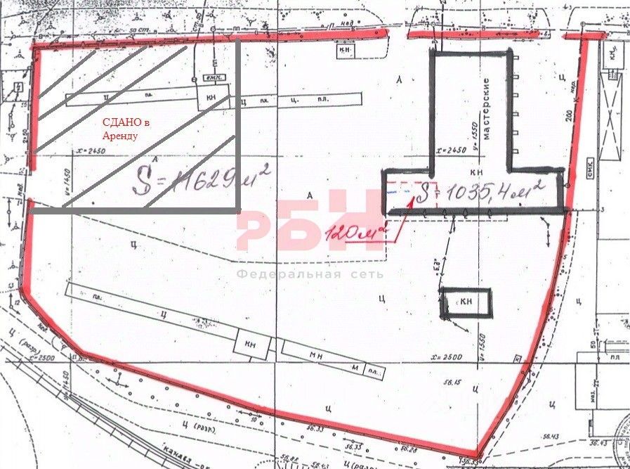 - здание 1035 кв. м бывшие мастерские под ремонт спецтехники с бытовками и офисами в т. ч. бывший гараж (882, 6кв. м), кирпичное;