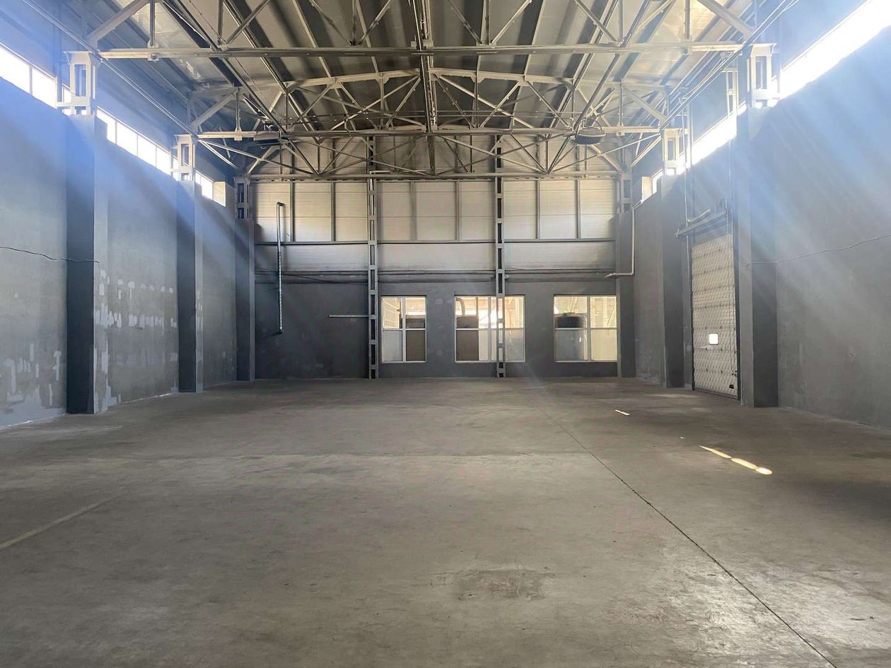 Ровный прямоугольный склад, высота потолка - 9 м, пол бетонный, антипыль, нагрузка - 8 т/кв. м., трое въездных ворот 3 и 5 м.