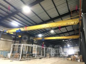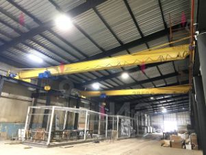 Четыре отдельных входа/выезда, 2 кран-балки грузоподъемности 5 тонн, 2 кран-балки грузоподъемности 10 тонн.