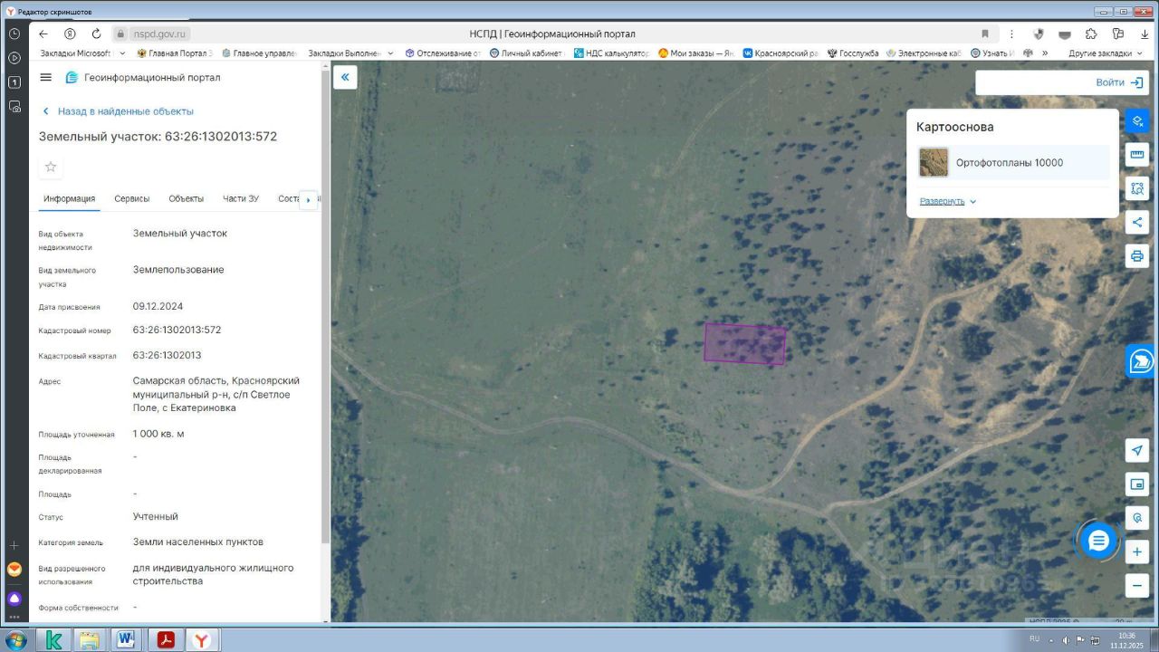 Земельный участок, категория земель "Земли населенных пунктов", вид разрешенного использования "Для индивидуального жилищного строительства", площадью 1000 кв.м, кадастровый номер 63:26:1302013:572, расположенного по адресу: Российская Федерация, Самарская область, Красноярский муниципальный район, сельское поселение Светлое Поле, село Екатериновка.