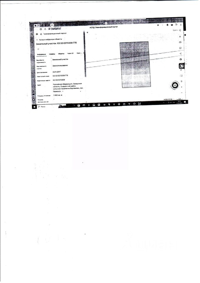 площадь 1000 кв.м. КН 63:33:0215009:778, вид разрешенного использования: Для Индивидуального жилищного строительства