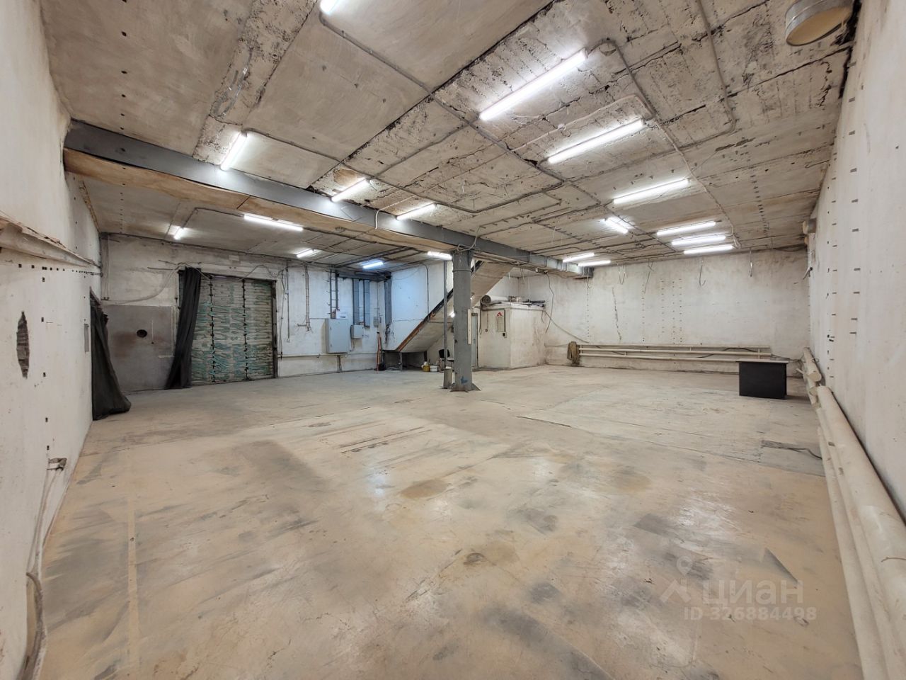 Высота потолка переменная т.к. скатная крыша: 3.85 3.6 м. Пол железобетон. топинг, антипыль