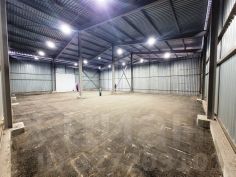 Правильной прямоугольной формы помещение 18*24м. Высота потолка по стенам 7м, в коньке 9м двускатная крыша. Пол асфальт, ровный. Рассчитан на большие нагрузки.