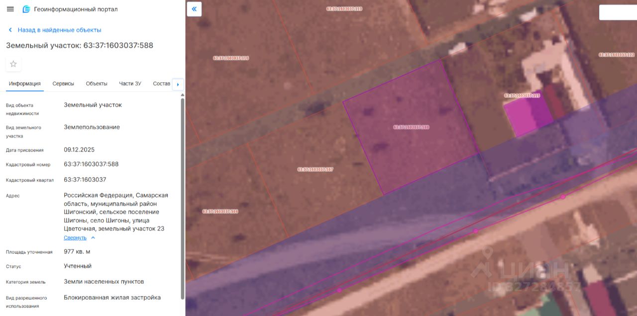Кадастровый номер земельного участка: 63:37:1603037:588.