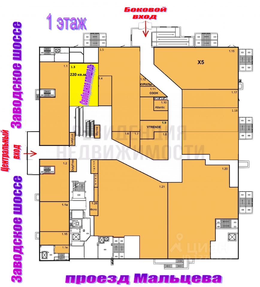 Якорные федеральные арендаторы - "Чижик", "Пятерочка", "Familia", "Fix Price", "Duty Free" "Zolla" и.т.д.