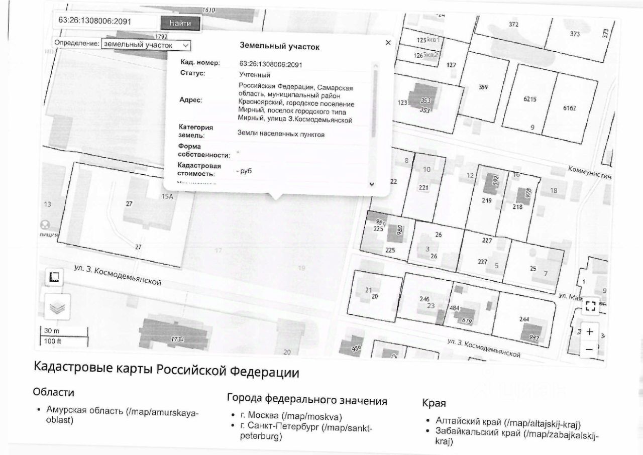 Земельный участок, категория земель "Земли населенных пунктов", вид разрешенного использования "Малоэтажная многоквартирная жилая застройка", площадью 10296 кв.м., кадастровый номер 63:26:1308006:2091, расположенный по адресу: Российская Федерация, Самарская область, муниципальный район Красноярский, городское поселение Мирный, поселок городского типа Мирный, улица З. Космодемьянской.