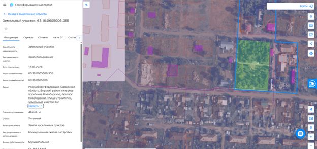 Российская Федерация, Самарская область, Борский район, сельское поселение Новоборское, поселок Новоборский, улица Строителей, земельный участок 3/2, площадью 484 кв.м, с кадастровым номером: 63:16:0605006:355, категория земель - земли населенных пунктов, вид разрешенного использования - блокированная жилая застройка.