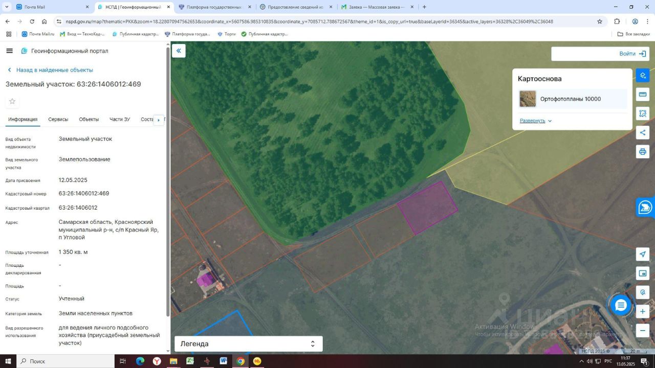 Земельный участок, категория земель "земли населенных пунктов", вид разрешенного использования "для ведения личного подсобного хозяйства (приусадебный земельный участок)", площадью 1350 кв.м, кадастровый номер 63:26:1406012:469, расположенный по адресу: Самарская область, Красноярский муниципальный район, сельское поселение Красный Яр, поселок Угловой.