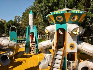Напротив дома большой современный сквер со спортивной площадкой, дорожкой для пробежек и космической детской площадкой, а также главный фонтан города и областная научная библиотека.