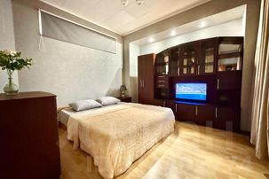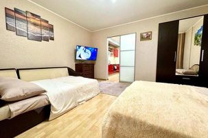 • Двуспальная кровать (160/200 см. с ортопедическим матрасом) заправлена чистым бельём;