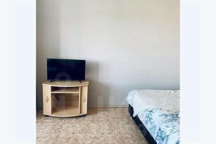 В гостиной двуспальная кровать, двуспальный диван, ТВ, утюг и гладильная доска.