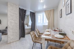 ?? -размещение 2+2Для проживания есть все необходимое:? -широкая удобная кровать 160 на 200?-удобный раскладной диван -1 шт.??-вся посуда? - вся бытовая техника• Холодильник;• Электроплита + вытяжка• Духовой шкаф;• Электрический чайник;• Микроволновая печь;• Телевизор (кабельное ТВ - 170 каналов);• Стиральная машина;• Постельное белье, полотенца;• Фен;• Средства личной гигиены;• Бытовые моющие средства;• Утюг, гладильная доска, сушилка для белья;• Лоджия• Чай, кофе, сахар,соль,перец,Масло;? -бесплатный Wi-Fi 100 Мбит/с;? - всегда горячая вода;? - курить запрещено, за данное нарушения залог не возвращается.?-Не сдаём для проведения мероприятий. Ограничение по возрасту до 21 лет.