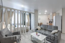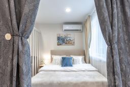 Для проживания есть все необходимое: широкая удобная кровать 160см на 200см, раскладной диван, посуда, бытовая техника (Холодильник, Электроплита, Духовой шкаф, Электрический чайник; Микроволновая печь; Телевизор; Стиральная машина; Постельное белье, полотенца; Фен); Средства личной гигиены; Бытовые моющие средства; Утюг, гладильная доска, сушилка для белья; Лоджия.