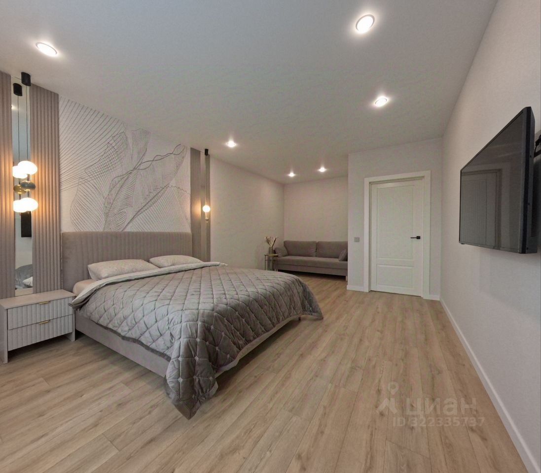 В студии есть все для комфортного проживания: двуспальная кровать, диван, ЖК телевизор, Wi-Fi, холодильник, стиральная машинка, микроволновка, чайник, кондиционер, утюг, фен.