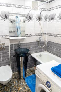 Есть все для комфортного проживания: холодильник, микроволновка, плита, чайник, посуда, телевизор, стиральная машина, гладильная доска и утюг, фен, гель для душа/шампунь, жидкое мыло, чай, сахар, кровать 160*200, диван 140*200, комплект полотенец, комплект постельного белья, Бесплатный WI-FI + кабельное телевидение. К каждому заселению номер тщательно убирается. Развитая инфраструктура: магазин Пятёрочка и Магнит, аптека. В 5 минутах ходьбы отличная транспортная развязка. Заезд после 14.00. Выезд до 12.00. Возможны ранний заезд и поздний выезд по предварительному согласованию. При заселении оставляется залог 1000 руб., который возвращается при выселении. Для заселения потребуется паспорт. Не сдается для шумных вечеринок. Курение запрещено.