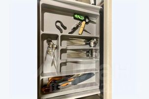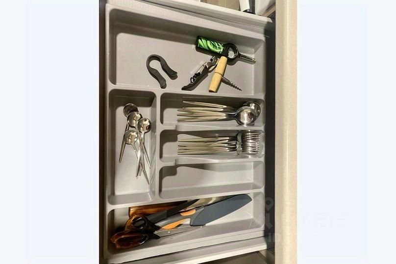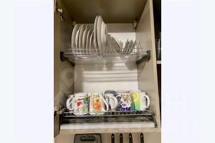 Оборудованная кухня со всей необходимой техникой: холодильник, газовая плита, микроволновая печь, чайник. Предусмотрена вся необходимая посуда: плоские тарелки, глубокие тарелки, кружки, бокалы, вилки, ложки, столовые ножи, чайные ложки, кастрюля, сковородка, разделочная доска