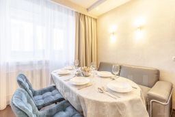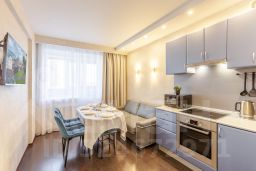 В квартире есть все необходимое для комфортного проживания: удобная мебель, бытовая техника, посуда, постельное белье и полотенца. Вы можете отдохнуть на просторной кровати после насыщенного дня или провести время за просмотром фильма на удобном диване.