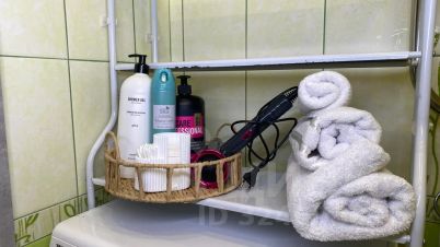 *свежие полотенца (комплект для каждого гостя), фен, утюг, гладильная доска, вешалки, средства личной гигиены (шампунь, гель для душа)