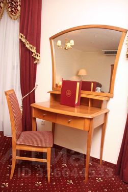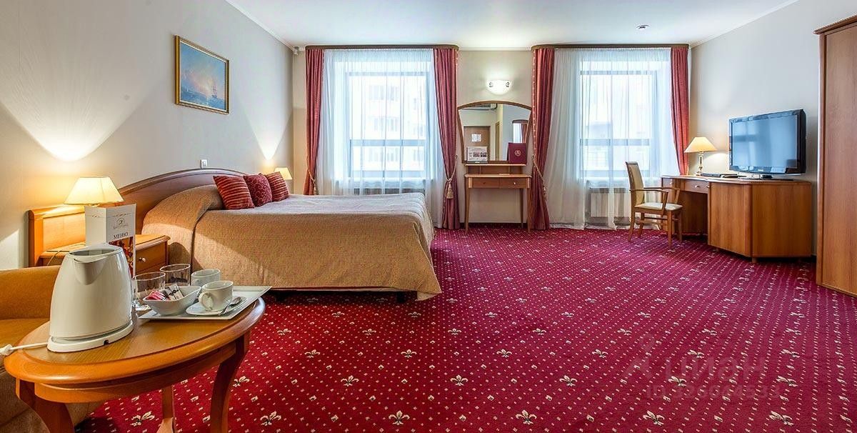 В номере: двуспальная кровать, ванная комната, гардероб, письменный стол, мягкая зона, туалетный столик, телефон (в том числе и в ванной комнате), телевизор, Wi-Fi и проводной доступ к Internet, система центрального кондиционирования, чайный набор, минибар, сейф, тапочки, принадлежности для обуви.