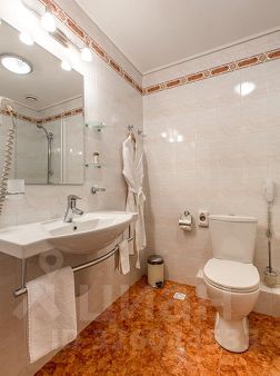 В ванной комнате: ванная, санузел, фен, телефон, комплект полотенец, халат, косметические принадлежности.