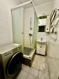 Сама квартира выдержана в едином стиле, очень теплая для зимы, для лета не душная, есть кондиционер и закрываемые жалюзи на окнах. Просторная и большая кухня со всем необходимым и дополнительным раскладным диваном (по сути вторая большая комната). Санузел раздельный, в ванной душевая кабина. В коридоре огромный шкаф для вещей, в прихожей есть тренажер для поддержания формы.
