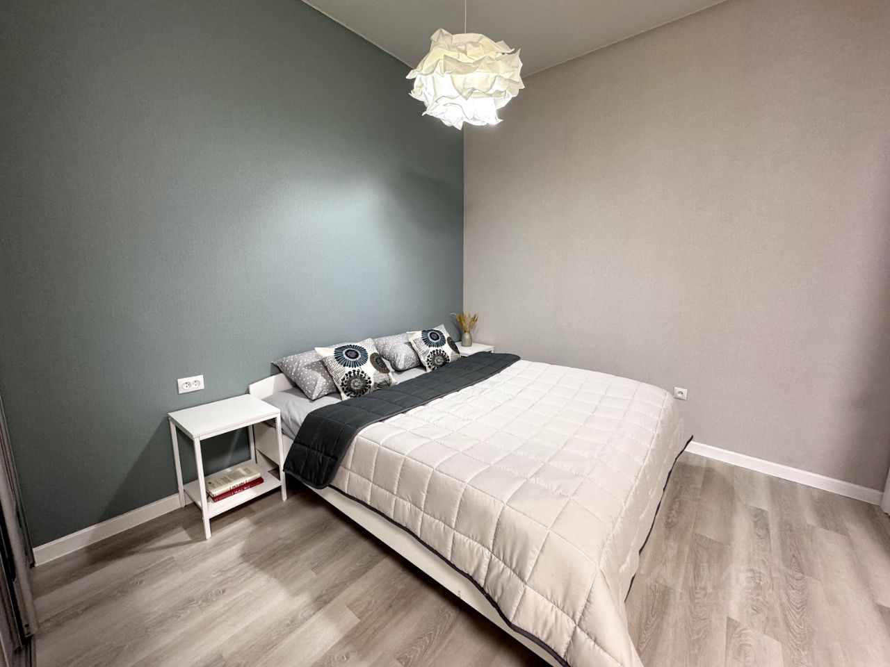 комфортная двуспальная кровать; шкаф, кондиционер, гладильная доска, утюг, сушилка, чистое постельное белье, комплект мягких полотенец