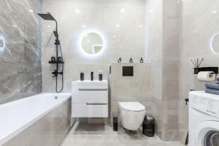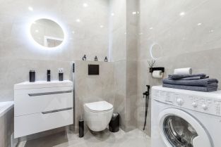 Ванная комната (шампунь, гель для душа, гигиенический набор, мыло в дозаторах, стиральный порошок), стиральная машина, фен, зубные щетки и тапочки