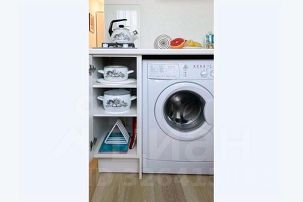 Кухня: стиральная машина, газовая колонка, газовая двухкомфорочная плита, микроволновая печь, холодильник с морозильной камерой.
