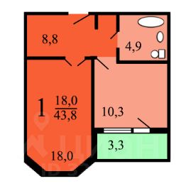 Общая площадь43,8 м²