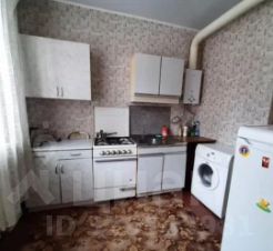 Кухня площадью 8 м² оснащена необходимой бытовой техникой, включая холодильник и стиральную машину. Из мебели в комнате присутствуют шкафы и диван. Санузел совмещённый, оформлен в светлых тонах.