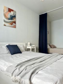 Двухспальная кровать 160х200 см, кровать (спальное место 120х200 см). Кондиционер, микроволновка, стиральная машина, гладильная доска, утюг, фен, смарт-тв, бесплатный Wi-Fi.