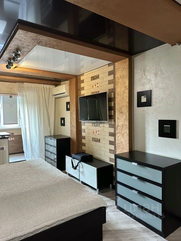Сдается квартира на длительный срок .В спальной комнате есть кровать с встроенным ящиками для хранения белья, изголовье с полками, две прикроватные тумбы, шкаф-купе, два комода и тумба по телевизором. Из техники: кондиционер, телевизор. На лоджии - рабочий кабинет. На кухне из техники: кондиционер, холодильник, микроволновая печь. Есть розетки под телевизор над барной стойкой. В санузле - водонагреватель за дверцами, полки для бытовой химии В ванной комнате - стиральная машина, скрытое хранение бытовой химии в коробах. В коридоре - шкаф-купе, зеркало Обувница находится в общем тамбуре с соседями. Тамбур на две квартиры.