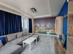 В гостиной большой раскладывающийся диван, функциональный гарнитур, установлен кондиционер для создания прохладного климата в летнюю жару. Из комнаты выход на просторную лоджию с теплыми полами и проведенным электричеством. Все окна распашные - можно любоваться прекрасным видом на окрестности.