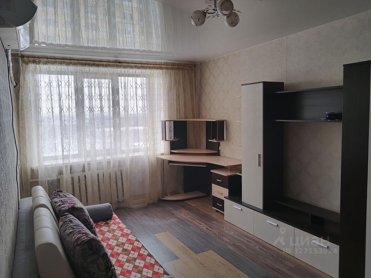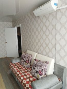 В квартире сделан косметический ремонт. Окна выходят во двор, что обеспечивает тишину и спокойствие. В наличии вся необходимая мебель как в комнате, так и на кухне. Из техники есть кондиционер, холодильник, телевизор и стиральная машина. Совмещенный санузел с ванной. Мусоропровод установлен, поэтому можно без хлопот избавляться от мусора.
