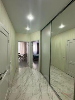 Шикарная однокомнатная квартира с новым ремонтом. В квартире оборудованная спальная зона, большая светлая кухня. Есть все необходимое для жизни — посудомоечная машина, микроволновая печь, гладильная доска, сушилка, полотенца, постельное белье, посуда.