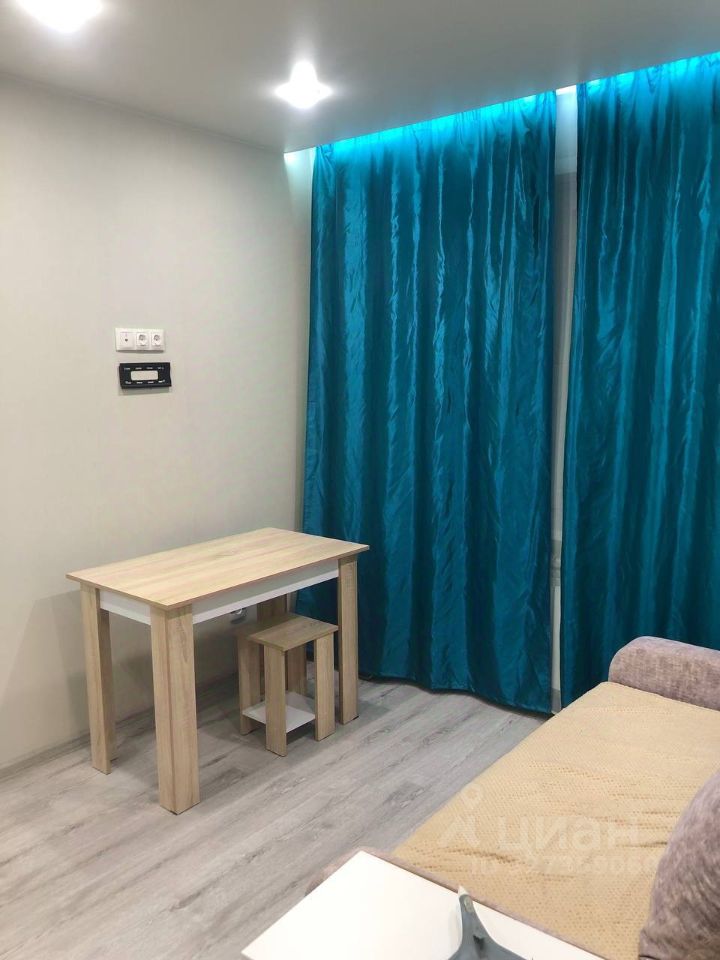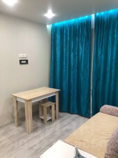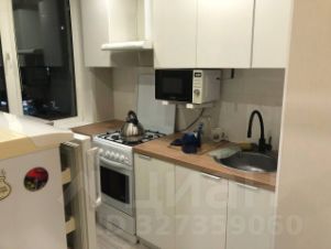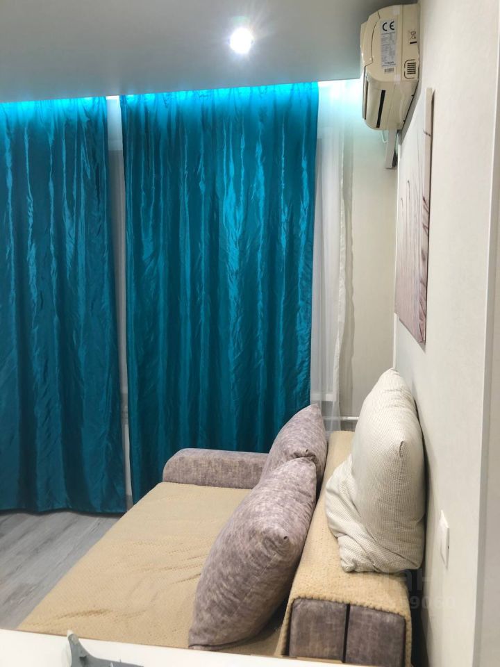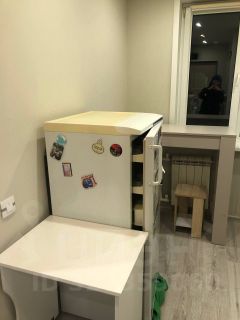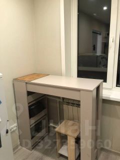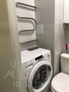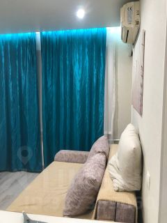 В квартире выполнен косметический ремонт. Просторная комната оборудована шкафами и диваном. Из техники в наличии холодильник и стиральная машина. Кухня компактная, оснащена газовой плитой и микроволновой печью.