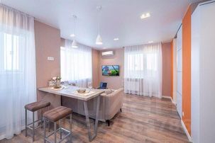 ФОТОГРАФИИ КВАРТИРЫ НА 100% СООТВЕТСТВУЮТ ДЕЙСТВИТЕЛЬНОСТИ. НАШИ ПРЕИМУЩЕСТВА: Полный пакет отчетных документов с подтверждением для бухгалтерии. Бесплатный WiFi в квартире. Работаем 24 часа в сутки Наличный и безналичный расчет. Скидки до 25% при длительном проживании. В КВАРТИРЕ ИМЕЮТСЯ: Кондиционер; ЖК-телевизор с подключенным кабельным ТВ; Комплект хлопкового постельного белья и полотенца. Базовый комплект постельных принадлежностей предоставляется бесплатно (в 1-комнатной квартире — на одну двуспальную кровать). Если вам понадобятся дополнительные комплекты, сообщите заранее, пожалуйста (1 комплект — 300 ₽).; Бытовая техника (стиральная машинка, СВЧ-печь, холодильник, плита, чайник, утюг, фен); Средства для личной гигиены (шампунь, гель для душа, мыло); Посуда для приготовления пищи; Гладильная доска и сушилка.