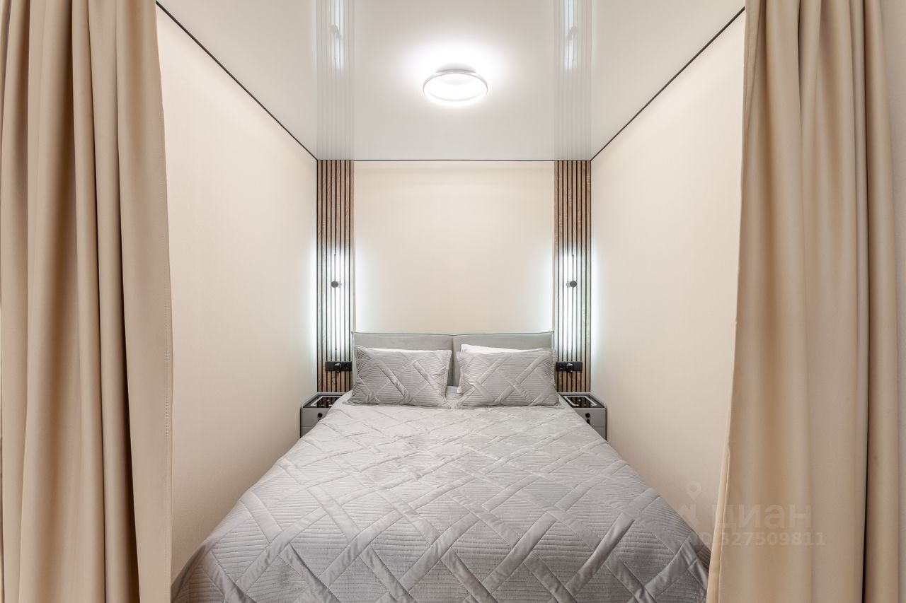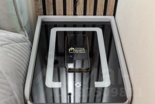 В спальне установлены трендовые прикроватные тумбы с функцией быстрой зарядки. Оцените эргономику современного жилья.