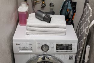 Техника для дома: стиральная машина с функцией сушки, беспроводной утюг, отпариватель, фен.