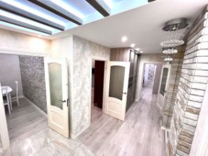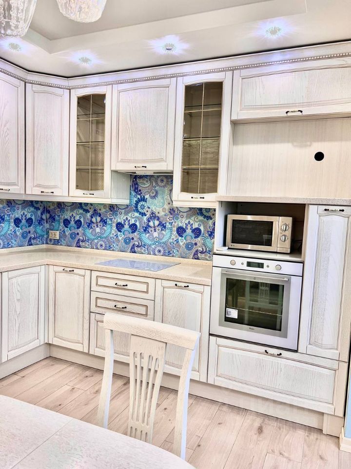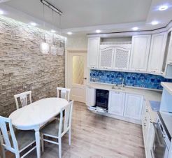 В квартире есть всё для вашего комфортного проживания: установлена качественная кухня из массива дерева, 3 кондиционера (в каждой комнате и на кухне), тёплый пол, вся необходимая мебель (3 больших вместительных шкафа, диван, двуспальная кровать с ортопедическим матрасом) и техника (плита, духовой шкаф, микроволновая печь, посудомоечная машина, варочная панель, водонагреватель, телевизор).