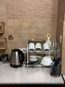 В квартире есть все необходимое для комфортного проживания: полноценная кровать 140х200, шкафы и места для хранения, отдельная кухня с обеденной зоной, холодильник, варочная панель, микроволновка, чайник, стиральная машина. Проведен интернет, есть роутер и колонка от сбера.