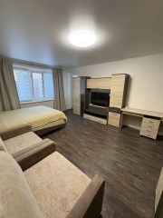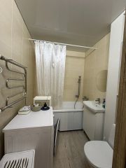 Квартира полностью готова к проживанию: в комнате и на кухне есть вся необходимая мебель. Установлена современная техника: холодильник, телевизор и стиральная машина. В совмещенном санузле имеется ванна. Интернет подключен, поэтому можно комфортно работать или отдыхать.