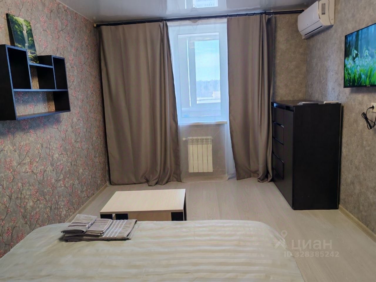 В комнате кондиционер, портьеры для комфортного сна, двуспальная кровать, комод для белья, ТВ Smart с разными программами и приложениями, всегда свежее постельное белье и полотенца. Wi-Fi.