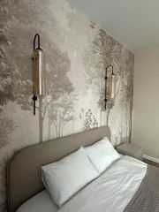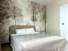 Спальня (14 кв. м) — удобная кровать с ортопедическим матрасом для здорового сна, прикроватная тумба, место для хранения вещей. Окна выходят на солнечную сторону — в комнате всегда светло и уютно. Есть возможность разместить дополнительный телевизор.