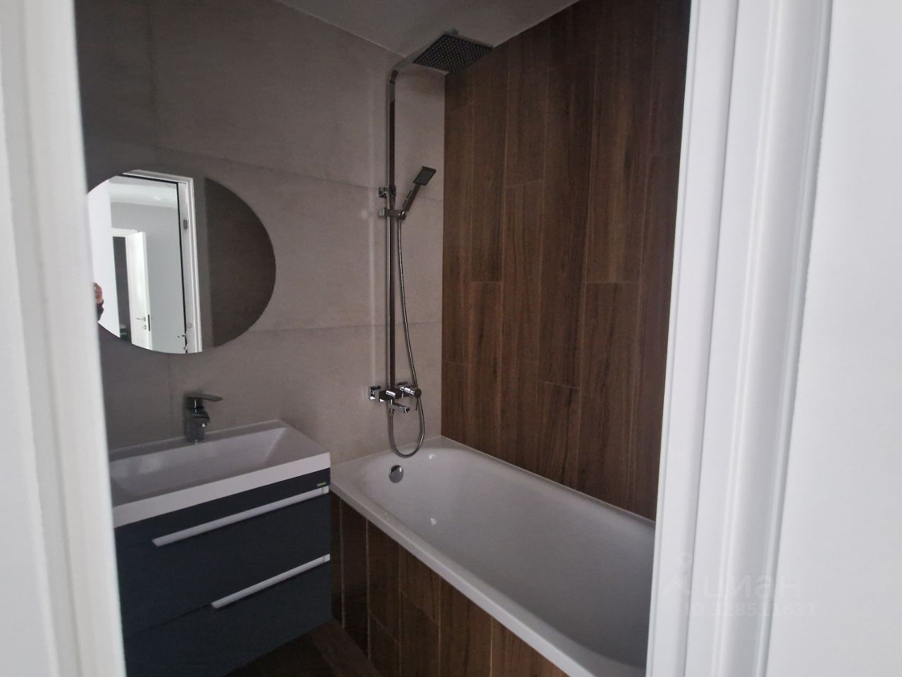 В комнате - подвесная тумба под телевизор, пока без кондиционера.