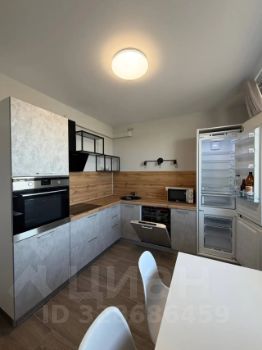 Кухня просторная, оборудована всей необходимой техникой: встроенный холодильник, посудомоечная машина, варочная панель, духовой шкаф и микроволновая печь.