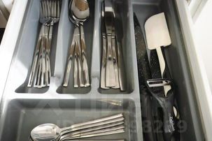 Чайник, столовые приборы и другие кухонные принадлежности, утюг и гладильная доска