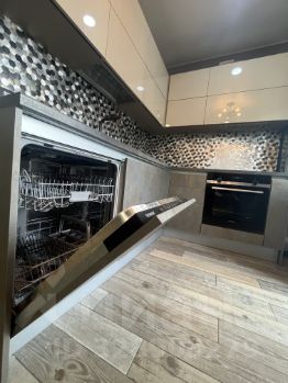 Кухня площадью 20 кв.м оснащена современной техникой: встроенная плита, духовой шкаф, посудомоечная машина и холодильник. В гостиной установлен кондиционер, а также имеется удобный диван и телевизор. Из окон открывается красивый вид на город.