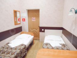 Номер с двумя односпальными кроватями. К услугам гостей телевидение, вентилятор, шкаф, прикроватные тумбы, диван, кресла, журнальный столик. Номер не оборудован санузлом. Гости могут воспользоваться санузлом и душем на этаже.