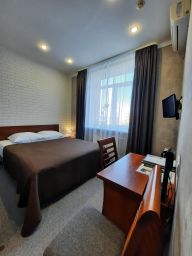 В номере - двуспальная кровать 140х200, ортопедический матрас , в состав которого входит наполнитель с морской травой, шкаф, стол, стул, прикроватная тумба, багажная тумба, телевизор ЖК, цифровое ТВ, телефон, кондиционер, беспроводной интернет Wi-Fi, холодильник, сейф, чайный набор, принадлежности для обуви.